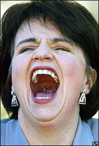 Right: Wendy Alexander, New Labour bigwig, Scottish opposition leader (the Scottish Nats are in control) laughs it up. She broke the law, and her punishment is a 24 hour suspension from Holyrood which won't take effect until the Autumn as the MSPs (Scottish MPs) are off on hols until then!